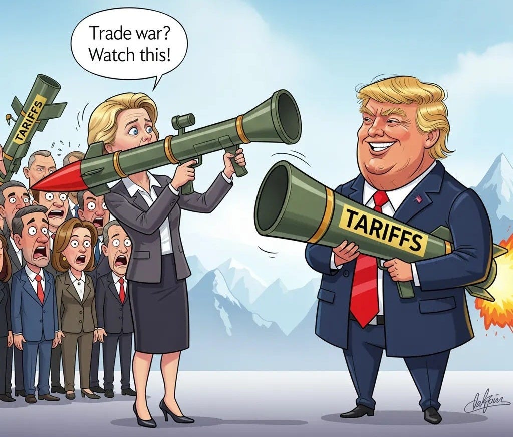 2. Only 18% of US imports come from the EU. They were worth $618 Billion in 2024. The US is the EU’s largest market. The EU cannot afford a trade war with the US.